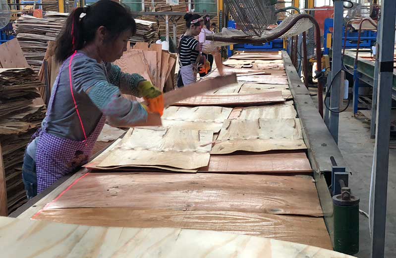 細(xì)節(jié)1:采用的原材料單板均為無(wú)破損一級(jí)板,在排板時(shí)遇到有破損的單板堅(jiān)決挑出來(lái),絕不混水摸魚(yú)。
